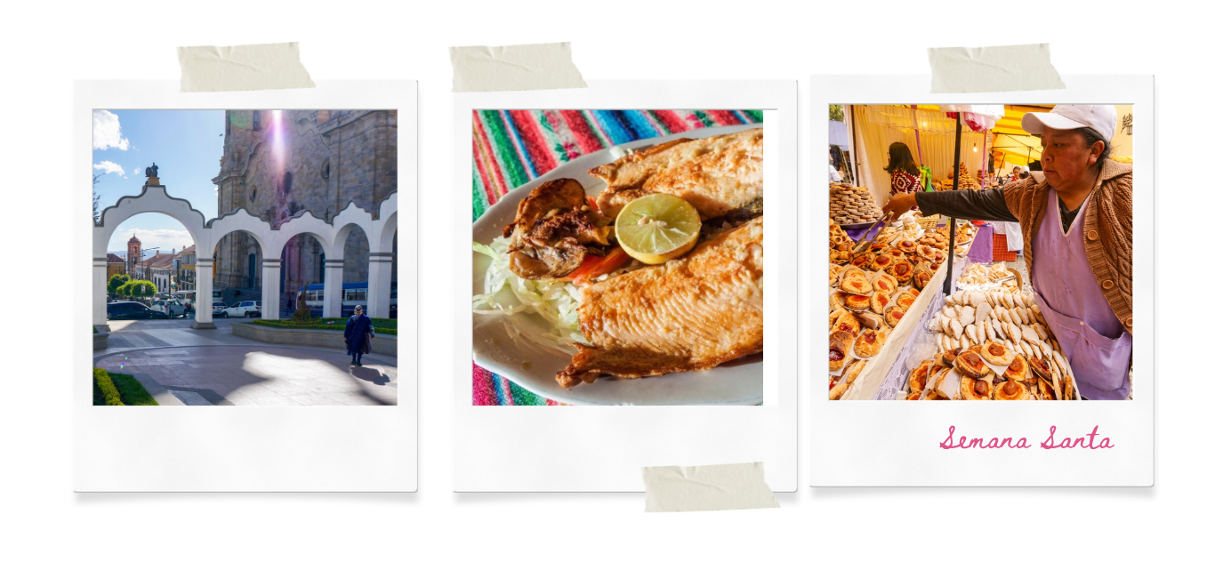 One of the most interesting things for travelers is how the city atmosphere changes. Streets that are usually noisy with traffic and daily rush suddenly feel calmer. Families walk together through plazas, churches fill with people, and many locals take the time to visit relatives or spend the day in quieter parts of the city. Food also plays an important role during Easter in Bolivia. Traditional dishes appear on tables and in small restaurants around the city. Many people follow the custom of avoiding meat on Good Friday and instead prepare meals based on fish, vegetables, grains, and local ingredients.